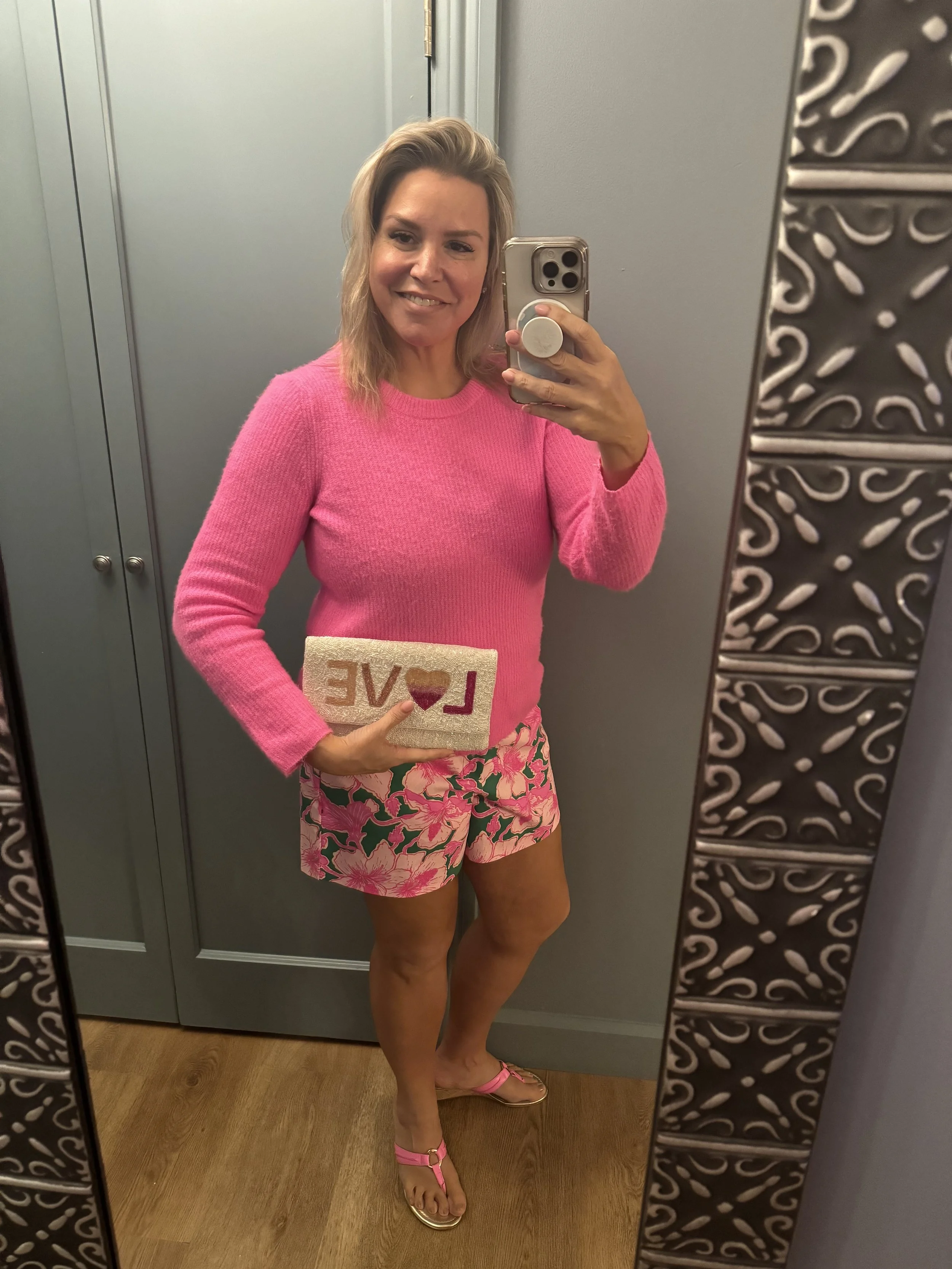Which is why Lilly Pulitzer is a must - she has the iconic styles that can easily pair a hot pink cashmere sweater with palm print shorts and matching low heeled sandals. Houston is blessed to have a Lilly store in Highland Village. But make sure you swing by The Frock Shop too - I got my cute clutch from the local women-owned business in Memorial. You can find them here.